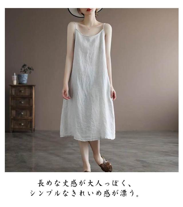 | 綿素材で仕立てたロング丈キャミワンピ! 柔らかいコットン生地、春夏は涼しい肌触りです。 ゆったりとした身幅でリラックスした着心地。 体型もカバーしながらこなれ感のあるお洒落が楽しめる。 長めな丈感が大人っぽく、シンプルなきれいめ感が漂う。 ワンカラーのデザインなので、トップスとボトムスとも合わせやすく、重ね着が楽しめます。 | |