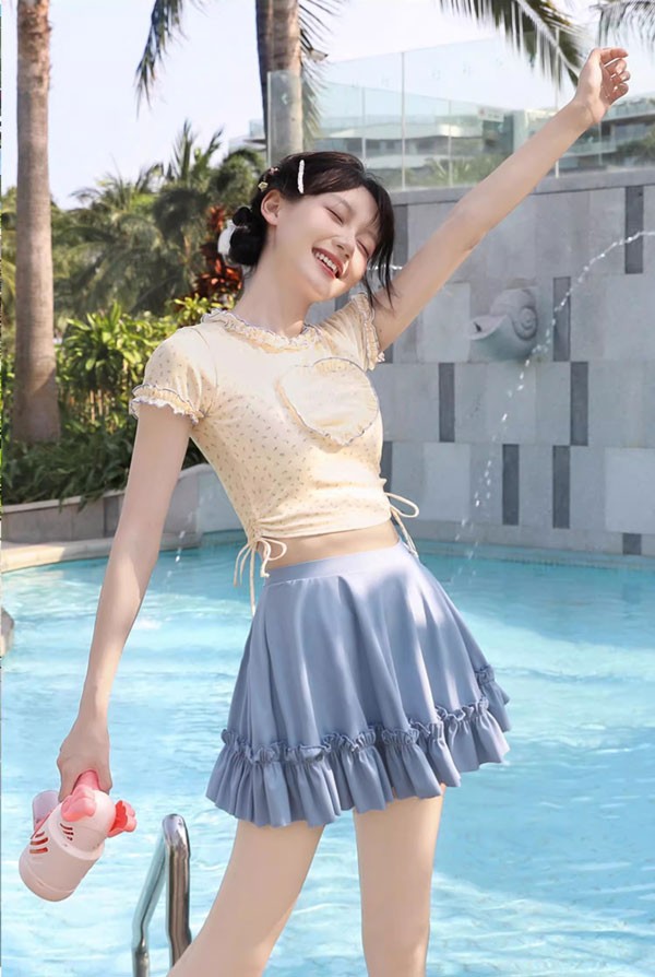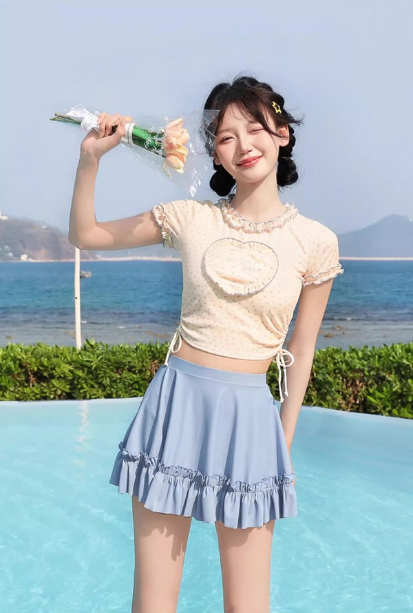 タンキニ レディース 2点セット フリル リボン 袖なし ワイヤーなし パッド付 ラウンドネック 着?せ シンプル セクシー 写真映え 撮影用 海 夏 サマー プール リゾート かわいい 旅行 温泉 大人 女性用 ジュニア 学生 女の子 ママ水着 ベージュ ブルー