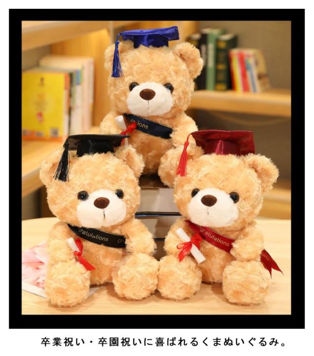 | 卒業祝い・卒園祝いに喜ばれるくまぬいぐるみ。 テディベアが卒業帽子をかぶってるよ! 卒業祝い、卒園祝い、入学祝い、合格祝いなどのプレゼントに | |