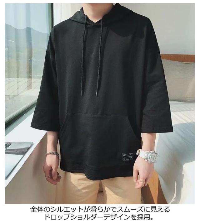 パーカー メンズ フード付きtシャツ プルオーバーパーカー 半袖 春服 薄手パーカー 薄手 夏 夏服 パーカー トップス 大きいサイズ 無地 シンプル 冷感 韓国 白 黒 ホワイト ブラック