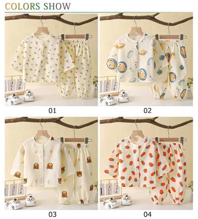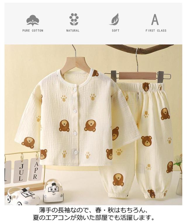 ルームウェア キッズ ベビー パジャマ 子供服 部屋着 長袖パジャマ 子供パジャマ ガーゼ 上下セット トップス 寝巻き セットアップ キッズパジャマ 寝巻 かわいい 薄手 2点セット 子供パジャマ パンツ 男の子 女の子 お出かけ