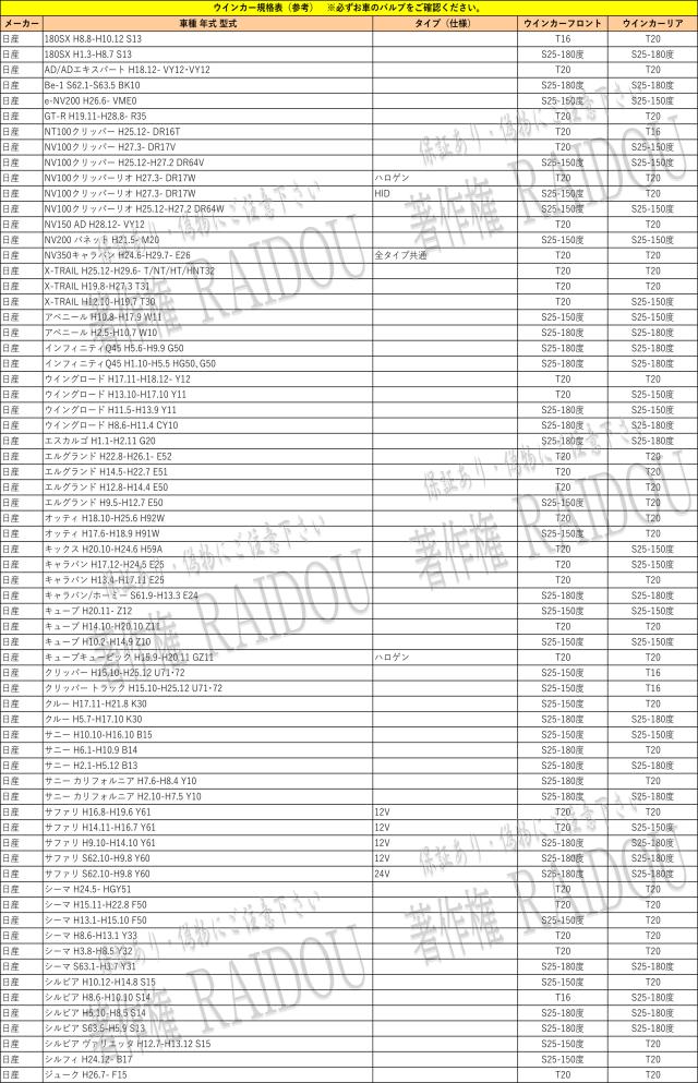 注)4灯全てをLEDバルブに変更した場合、車種により抵抗値が減少し、バルブ内蔵の抵抗値では不足し、