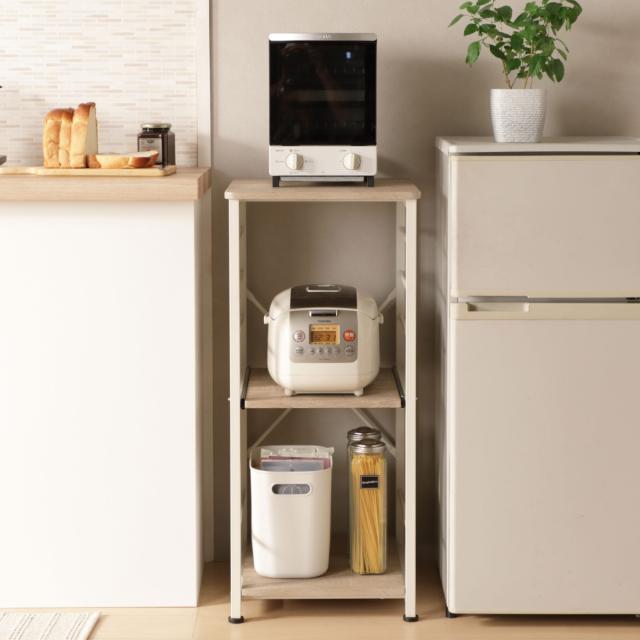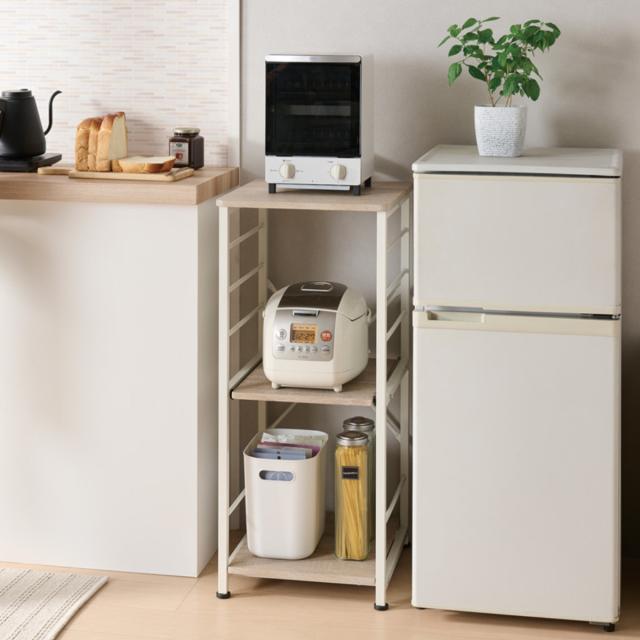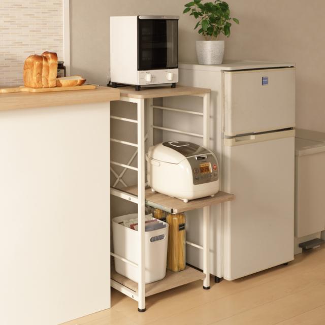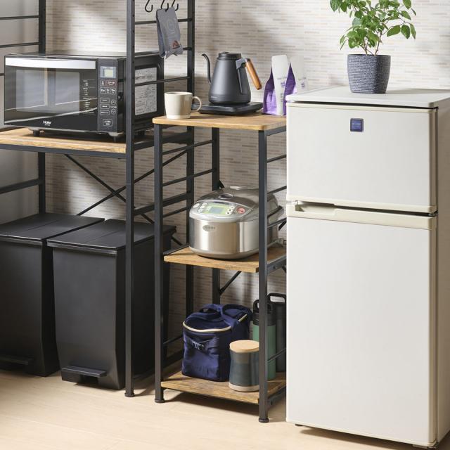 キッチン家電をまとめて収納できるキッチンラックです。ひとり暮らしの方や、ワンルームにお住まいの方にもぴったりなコンパクトサイズで、スペースの限られたキッチンでもすっきりとした印象に。