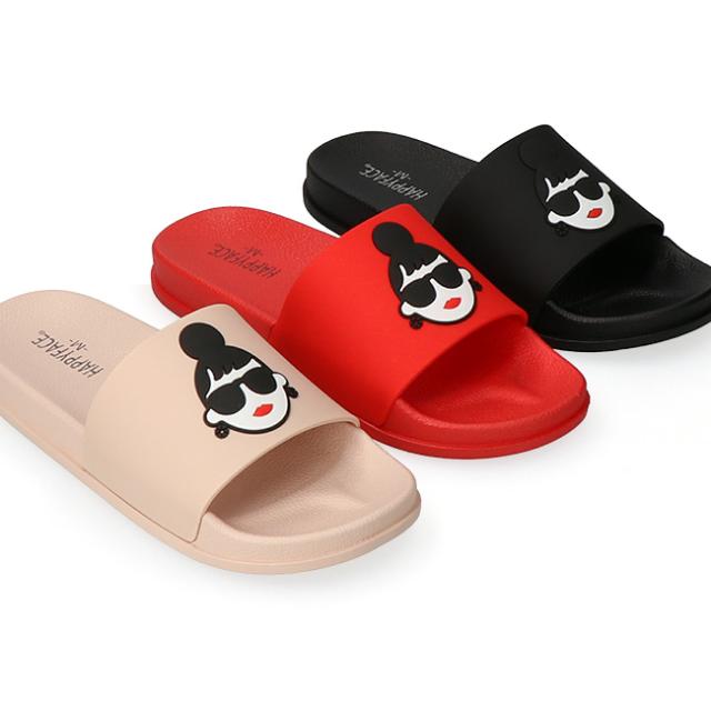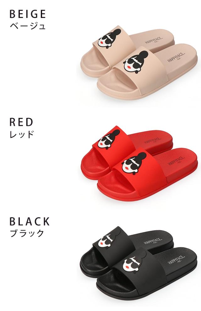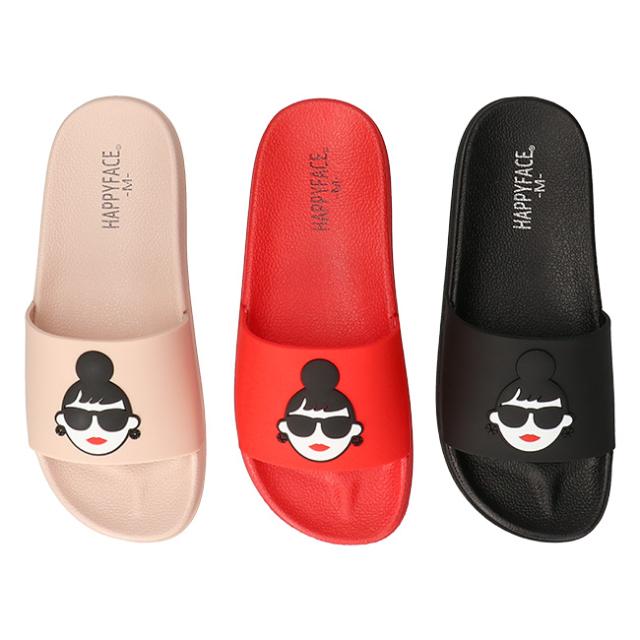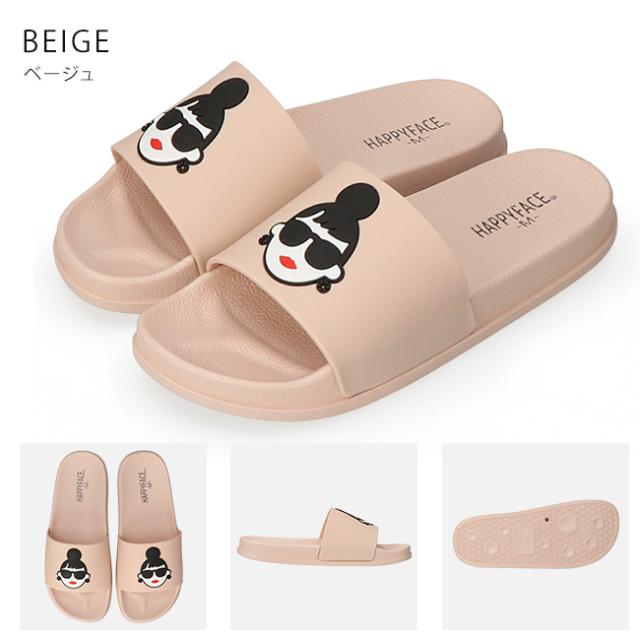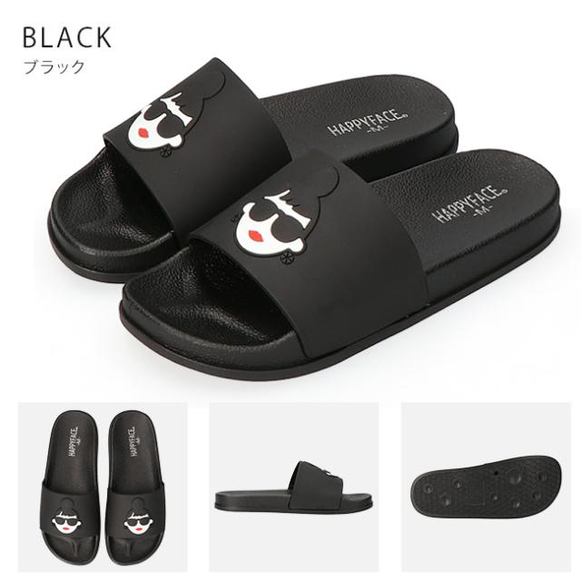 ハッピーフェイス シャワーサンダル レディース 黒 歩きやすい かわいい 16108 スライドサンダル サンダル 靴