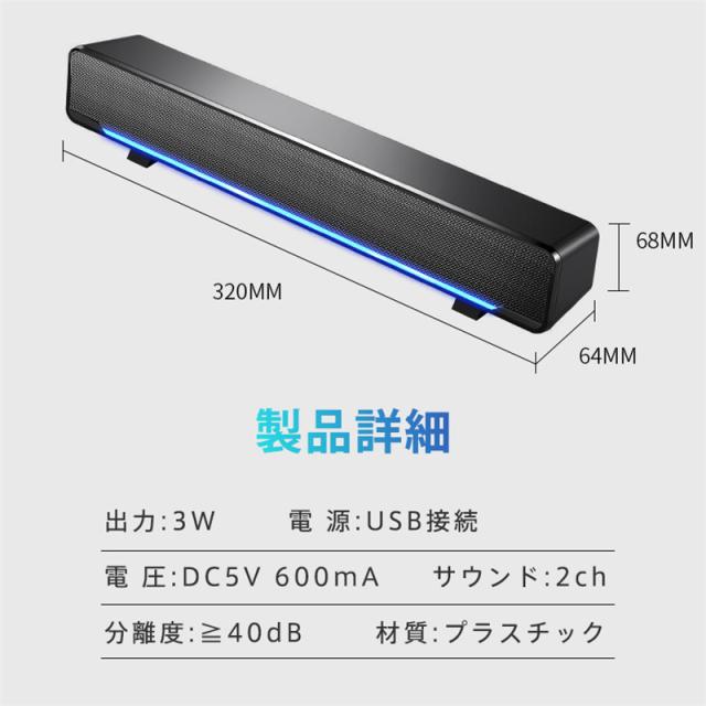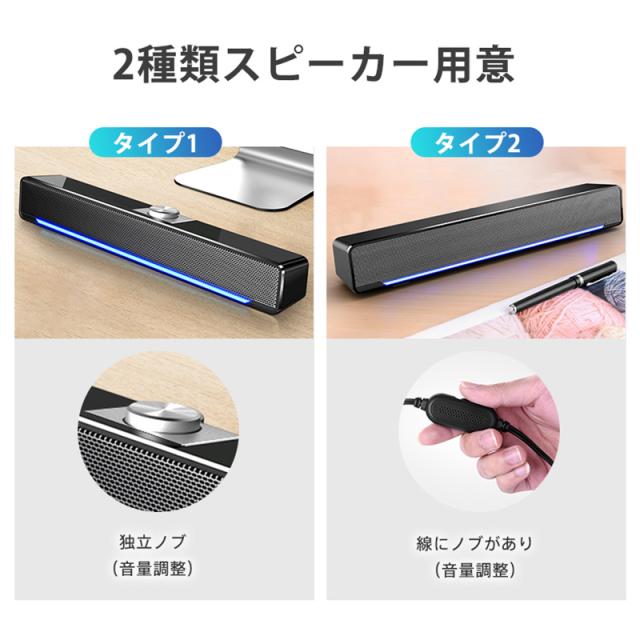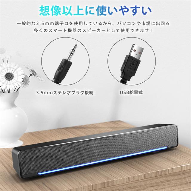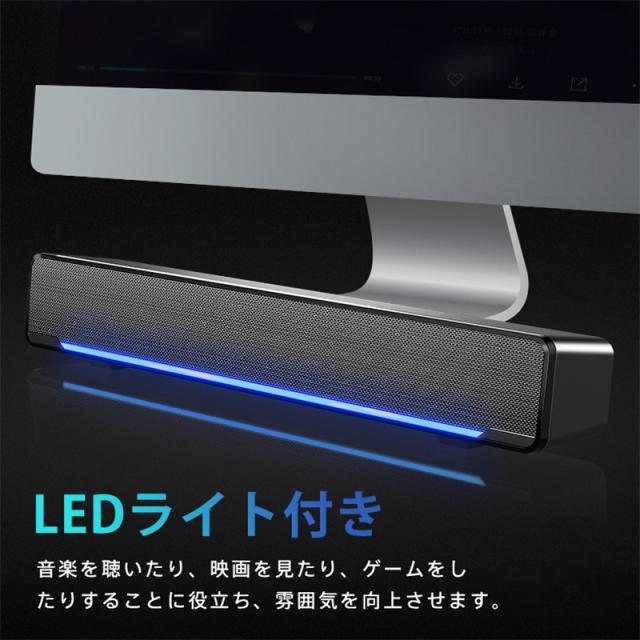 PCスピーカー 高音質 usb接続 有線 小型 スピーカー パソコンスピーカー 大音量 LEDライト付き コンパクト スマホ対応