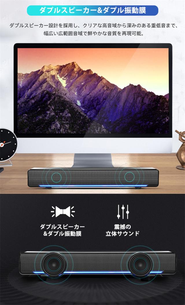 スピーカー pc テレビ 手元 有線 小型 usb 3.5mm 高出力 低音用 音量調節 ゲーム実況 PC おしゃれ 高級 ミニスピーカー 豊かな低音 usb給電 簡単操作 USB電源 3.5mm接続 映画 音楽 ゲームモード オンライン 会議 テレワーク 在宅 縦置き 横置き 外部スピーカー 父の日 敬老の日 プレゼント