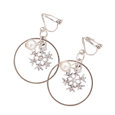 銀色/雪の結晶とパール揺れるフープイヤリング / サン宝石