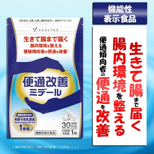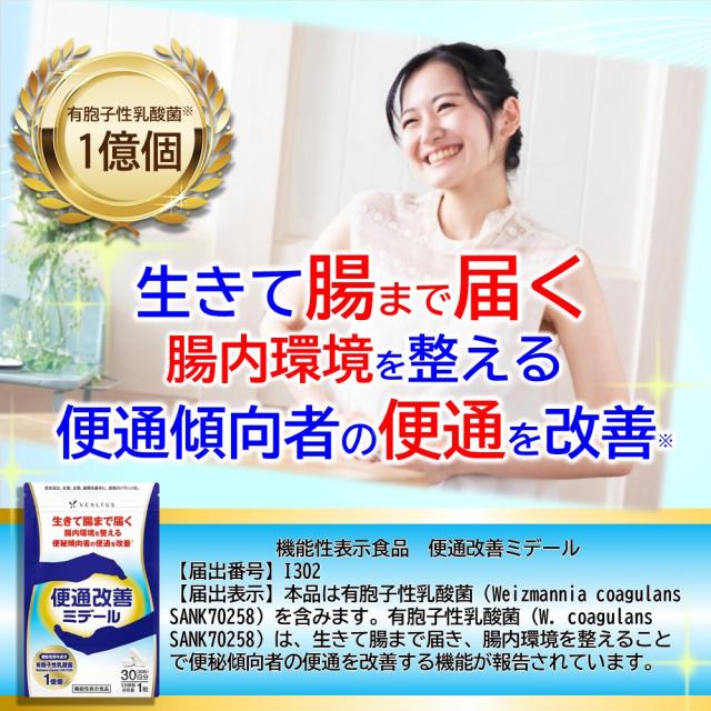 便通改善ミデール 30日分 機能性表示食品 生きて腸まで届き腸内環境を整え 便秘傾向者の便通を改善する 有胞子性乳酸菌 配合