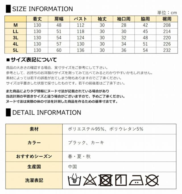 3L:着丈130 肩幅54 バスト124 袖丈30 脇周48 袖口周32 裾周220