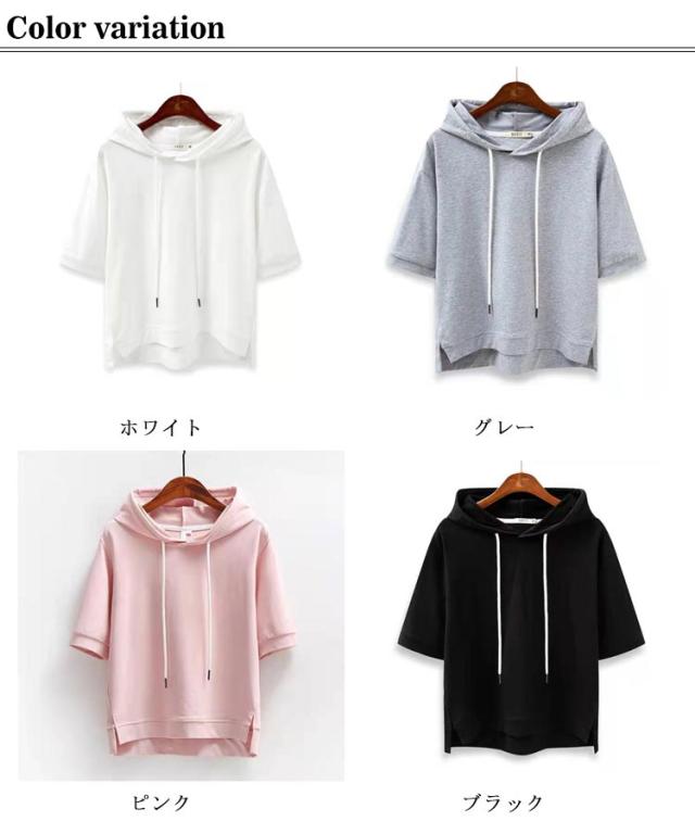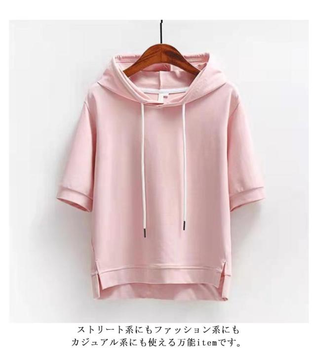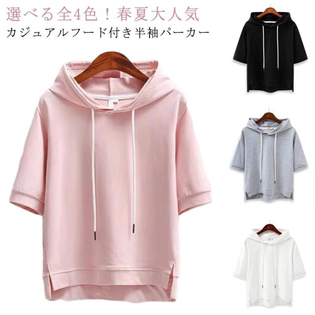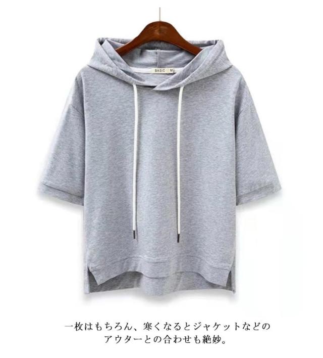 レディース カジュアル 学生 お洒落 大きいサイズ パーカー 無地 フード付き トップス フード付きtシャツ プルオーバー 半袖 シンプル 半袖パーカー 送料無料 夏服 着?せ ミディアム丈 おしゃれ 通勤 通学 女性 可愛い ギフト