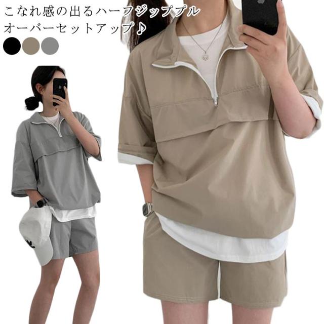 韓国ファッション レディース 5分袖 韓国ファッション 上下セット 原宿系 ショートパンツ 2点セット プルオーバー 大きいサイズ ジャージ 部屋着 半袖 カジュアル おしゃれ スポーツウェア ゆったり パーカー 夏 短パン