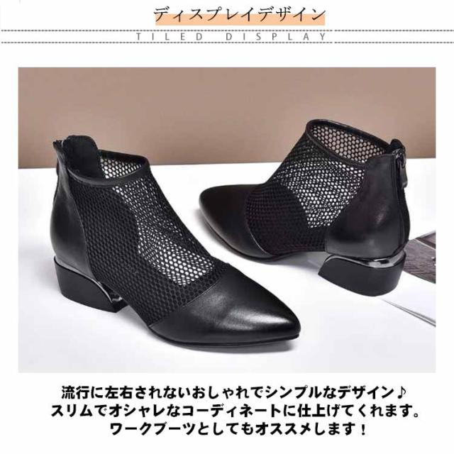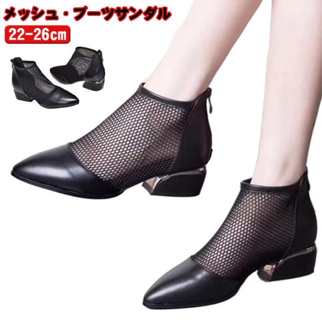 サマーブーツ 美脚 ミドルヒール サマーブーツ 通気性 ブーツサンダル 太ヒール 透け感 ショートブーツ ブーティー 靴 シューズ チャンキーヒール メッシュ カジュアル サンダル 夏 春 歩きやすい 秋 黒 可愛い 夏用ブーツ 通学