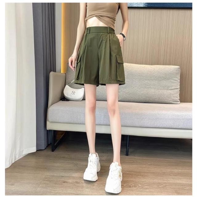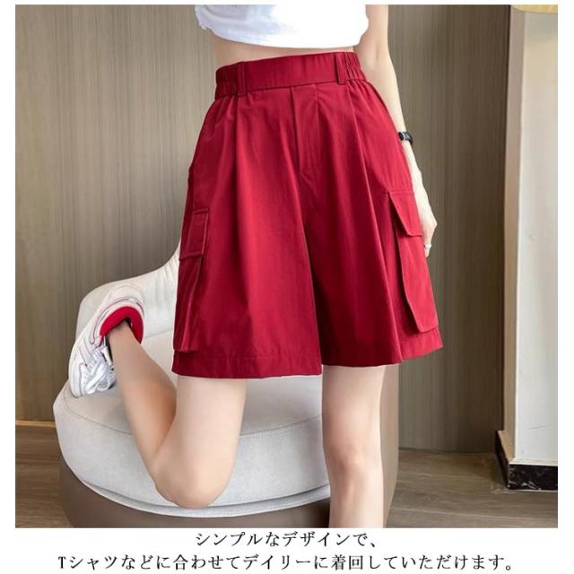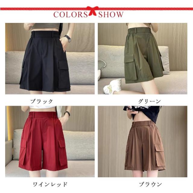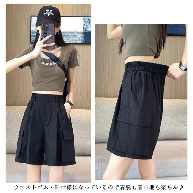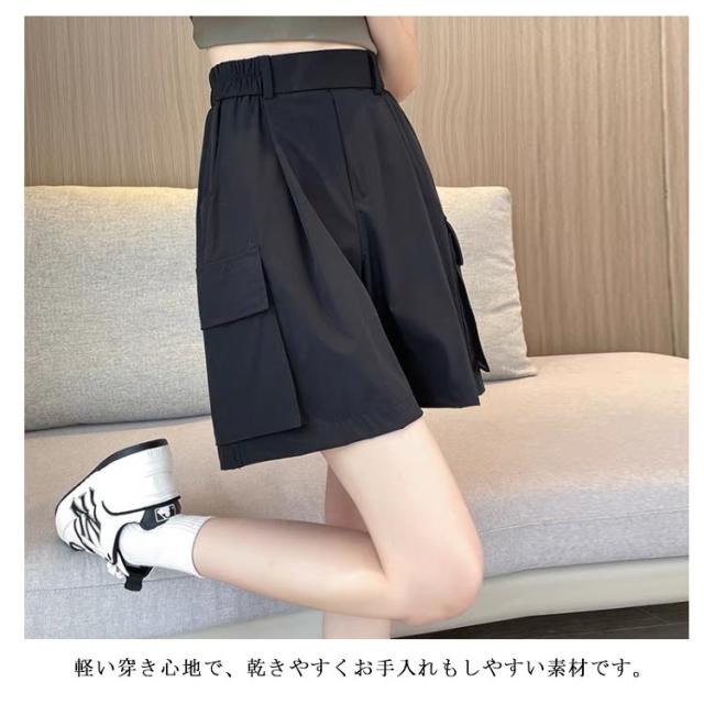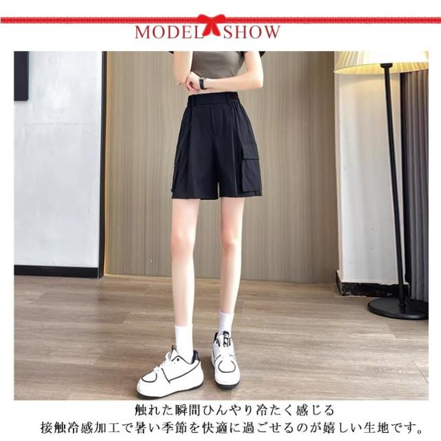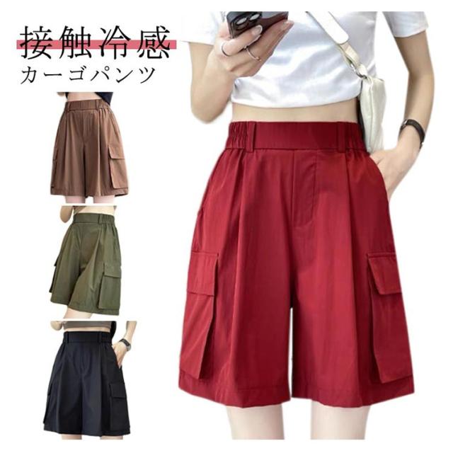 カーゴパンツ 接触冷感 接触冷感 ボトムス ひんやり 夏 ポケット ハーフパンツ 涼しいパンツ ワイド 薄手 半ズボン ショートパンツ ウエストゴム 無地 ゆったり イージーパンツ 軽量 春夏