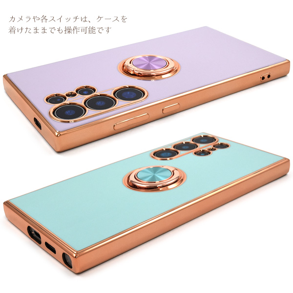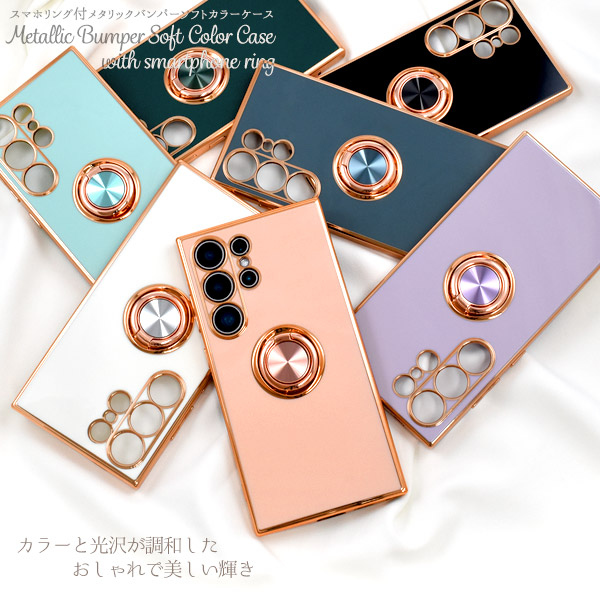 スマホケース Galaxy S24 Ultra SC-52E SCG26用 スマホリングホルダー付き メタリックバンパーソフトカラーケース 携帯ケース シンプル おしゃれ 指の変形防止 リング付き スマホカバー 携帯カバー お洒落 落下防止リング 保護カバー 背面カバー au携帯ケース au携帯カバー