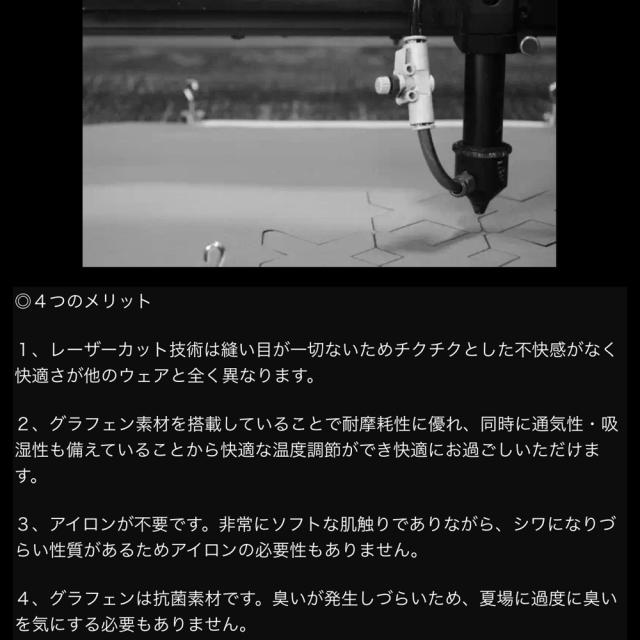 1、レーザーカット技術は縫い目が一切ないためチクチクとした不快感がなく快適さが他のウェアと全く異なります。