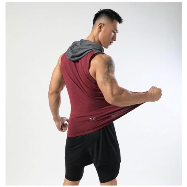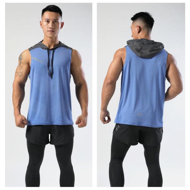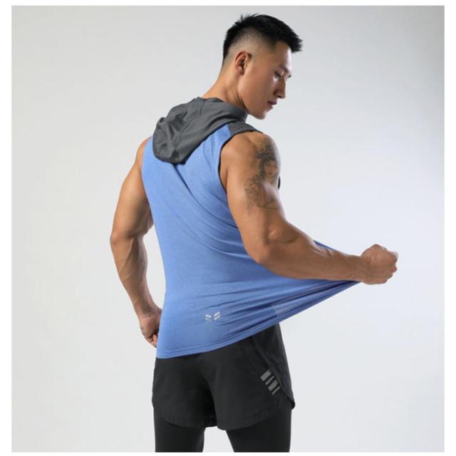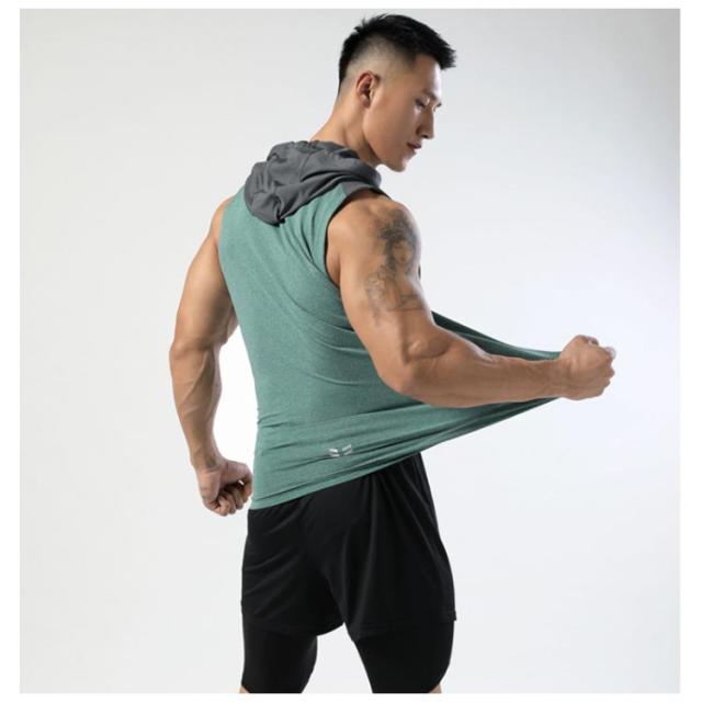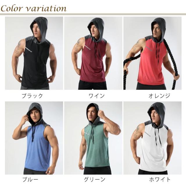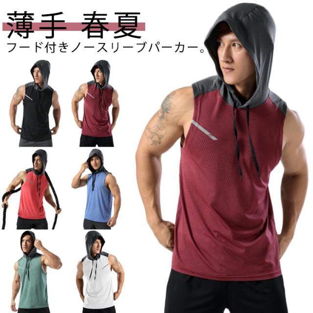 ノースリーブ メンズ パーカー 接触冷感 フード付き 速乾 タンクトップ ノースリーブ ストレッチ トップス 袖なし スポーツウエア トレーニング ダイエット