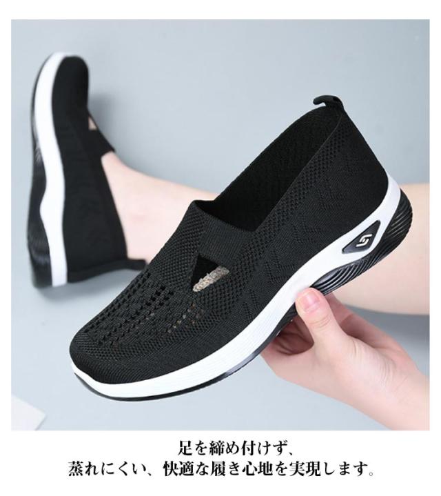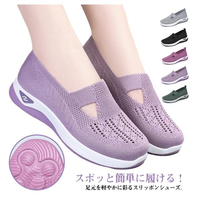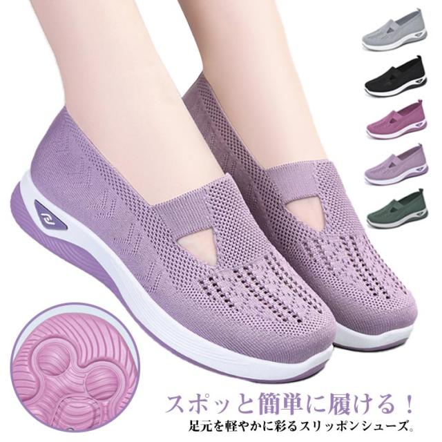 シューズ 厚底スニーカー ぺたんこ 軽量 すりっぽん 靴 ニットスニーカー メッシュ レディース パンプス フラットシューズ ダイエットシューズ エアクッション ローファー 美脚 軽量 看護師 作業靴 歩きやすい 疲れない 通勤 メッシュ 通学