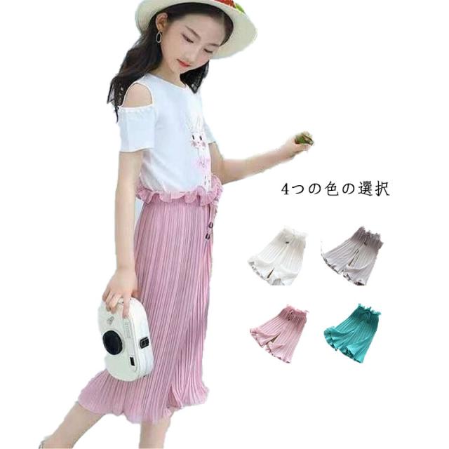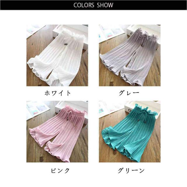 シフォンパンツ キッズ シフォンガウチョ 九分丈パンツ ガウチョ ダンスパンツ フレアパンツ 9分丈 無地 ウエストゴム ガウチョパンツ 子供服 ウエスト紐 薄手 透け感 お洒落 キレイめ ボトムス 送料無料 フレア シフォン