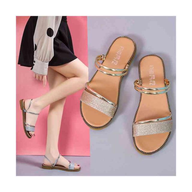 サンダル レディース シューズ カジュアルシューズ おしゃれシューズ 2WAY サマーサンダル おでかけ サマーシューズ ぺたんこ キラキラ スリッパ オシャレ 靴 ローヒール くつ 夏 送料無料 大人 かわいい 夏靴