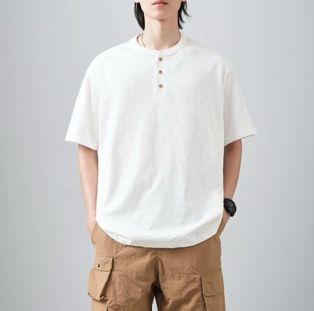 Vネック、クルーネック、ヘンリーネックの3タイプをご用意し、お好みやシーンに合わせてお選びいただけます。
