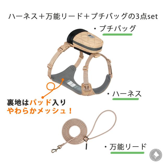 犬 ハーネス リードセット Truelove ブランド 脱着式 取り出せる 小物入れ やわらかい バイオベースドッグハーネス