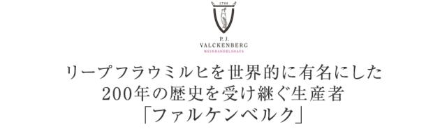 ![]() | 1908年のドイツワイン法の制定時には多くの醸造元を想い、リープフラウミルヒの名を広い概念で開放したファルケンベルク。 それによってリープフラウミルヒの名前がライン地方で生産される甘口ワインの総称に制定される事となります。 そして、その中でも元祖となるファルケンベルクが造るリープフラウミルヒには、掘り出された聖母像に敬意を評して「マドンナ」と名付けられました。 その後、ドイツ最古のワインプランドとして1908年に誕生して以来、ドイツをはじめ世界中の人々に愛され続けるワールドワイドプランドに成長し、リープフラウミルヒを世界的に有名にした立役者として一目置かれる存在となっています。 |