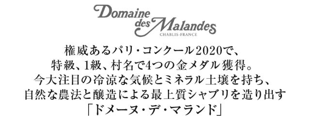 1972年、シャブリの旧家レ・トランブレイ家に生まれたマダム・マルシーヴは、共同組合や大手ネゴシアンがひしめくこの地区で自らのドメーヌ「マランド」を立ち上げました。「優れたテロワールの個性をありのままに」という信念で、ベストパートにある畑の古木の葡萄から、最新鋭の設備により、1本芯の通った洗練された“正統派シャブリ”を造り続けてきました。その結果、「アグリコール・パリ2009」では3つの1級畑が金賞を獲得する偉業を達成し、女手一つで名実共にトップの地位を築き上げました。