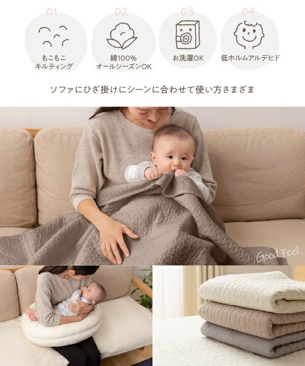 くもの形のキルト加工で、ぽこぽこ感がかわいい綿100%のソファパッド。さらっとした肌触りでべとづかず、ソファーの汚れ防止や、足元マットなどマルチに活躍