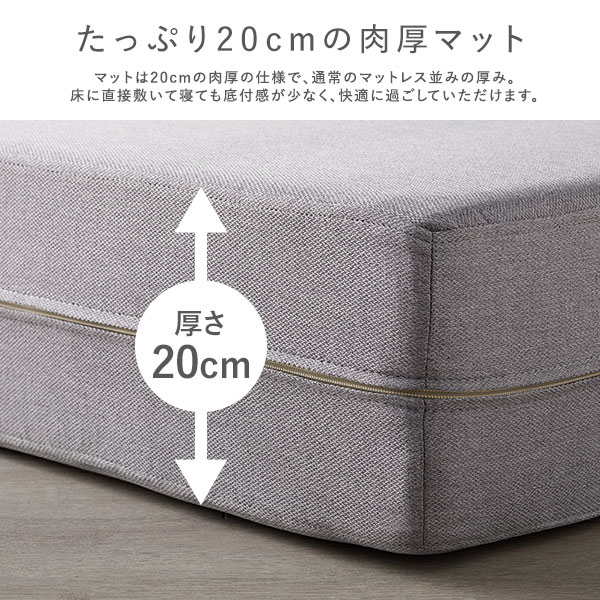 マットは20cmの肉厚の仕様で、通常のマットレス並みの厚み。