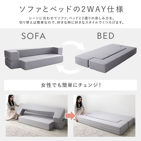 シーンに合わせてソファ、ベッドと2通りの楽しみ方を。