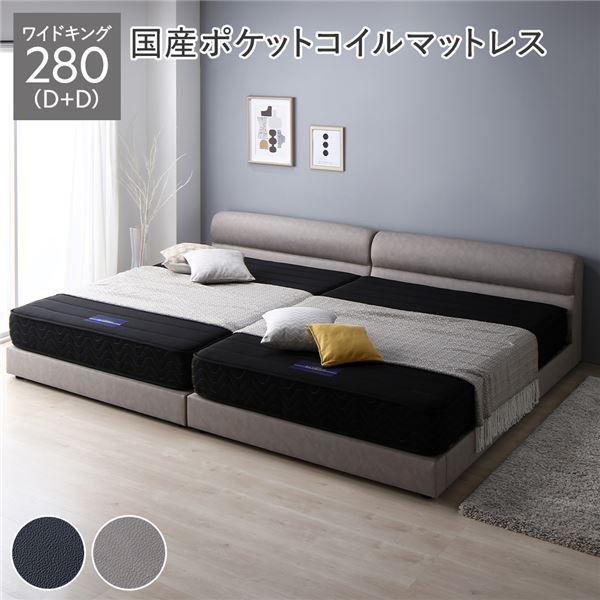 ベッド ワイドキング 280(D+D) 国産ポケットコイルマットレス付き グレージュ 連結 脚付き すのこ PVCレザー 組立品 【北海道・沖縄・離島配送不可】