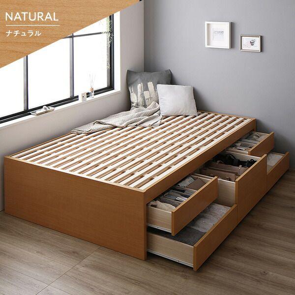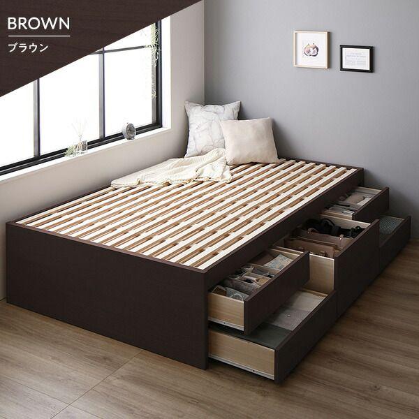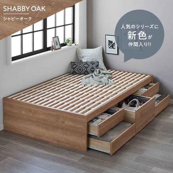 〔組立設置サービス付き〕 収納 ベッド ヘッドレス 通常丈 セミダブル 3ゾーンポケットコイルマットレス付き シャビーオーク 収納付き すのこ 日本製 【北海道・沖縄・離島配送不可】