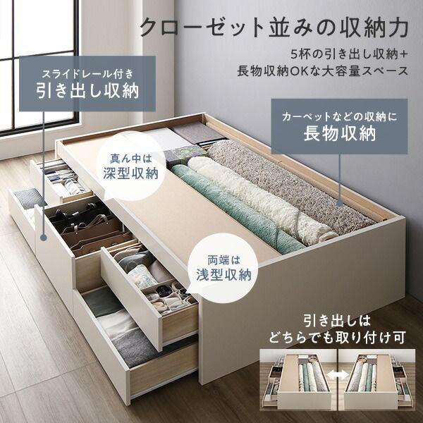 ●本商品は仕入元より配送となるため、北海道・沖縄・離島への配送はできません。 ■フレーム本体 【サイズ】 セミシングル 約幅83×長さ199×高さ41cm シングル 約幅98×長さ199×高さ41cm セミダブル 約幅120×長さ199×高さ41cm 【静止耐荷重】 約180kg(全サイズ共通) 【収納部有効内寸】 深型引き出し内寸:約幅57×奥行38.5×深さ25cm 浅型引き出し内寸:約幅57×奥行38.5×深さ9.5cm 収納スペース内寸:約幅29(SS)/44(S)/66(SD)×長さ193×深さ36cm 【梱包数】 5個口 【梱包サイズ】 セミシングル (5-1)約196×44×56cm (5-2)約35×98×10 (5-3)約88×4.5×43cm (5-4)約88×4.5×43cm (5-5)約35×2×100cm シングル (5-1)約196×44×56cm (5-2)約5...
