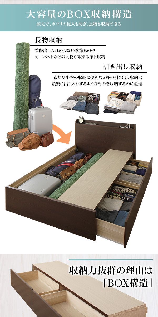 棚付きスリムヘッドBOX収納ベッド