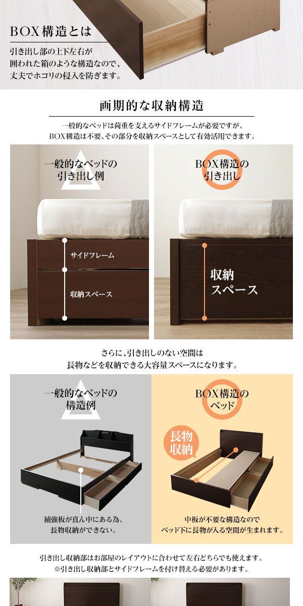 BOX構造は不要、その部分を収納スペースとして有効活用できます。