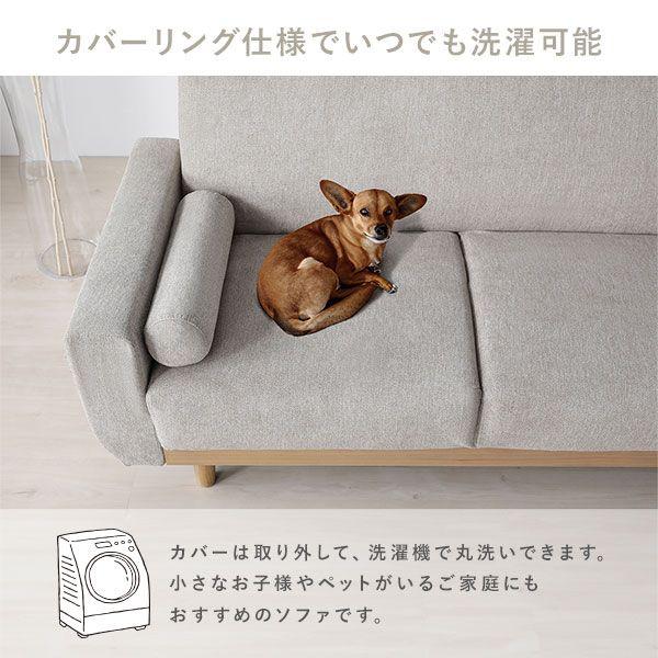 天然木 2人掛けソファ 単品 グレージュ おしゃれ 組立品 脚取り外し可能 カバーリング仕様 洗濯機で洗える 【北海道・沖縄・離島配送不可】