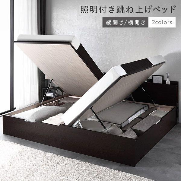 〔お客様組み立て〕 日本製 収納ベッド 通常丈 セミシングル フレームのみ 縦開き ハイタイプ 深さ44cm ブラウン 跳ね上げ式 照明付き 【北海道・沖縄・離島配送不可】