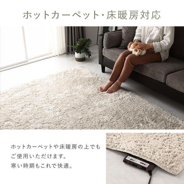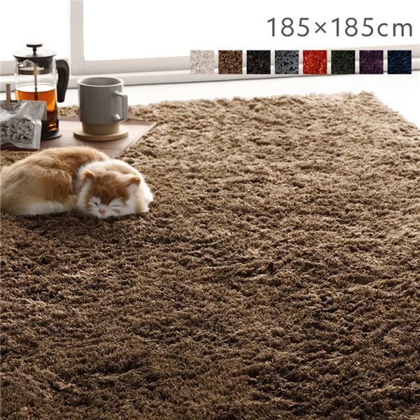 洗える シャギーラグ 約185×185cm 約2畳 ベージュ 正方形 ホットカーペット対応 床暖房対応 オールシーズン すべり止め付き 【北海道・沖縄・離島配送不可】