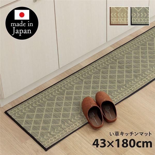 キッチンマット ナチュラル シンプル い草ラグ 抗菌防臭 カーペットマット 国産 日本製 滑り止め いぐさ ネイビー 約43×180cm 【北海道・沖縄・離島配送不可】