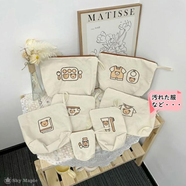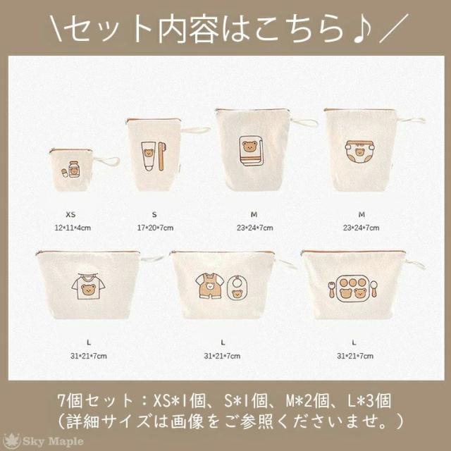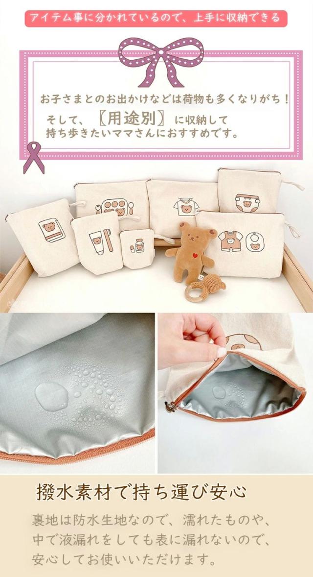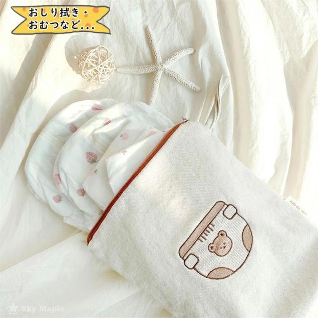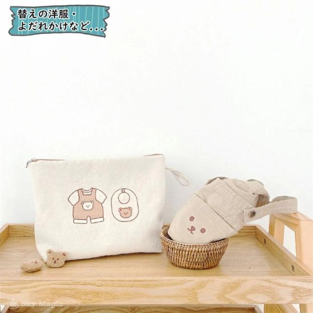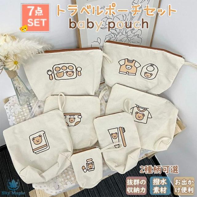 おむつポーチ 防水 7点セット おでかけポーチ 着替えバッグ オムツポーチ おむつ入れ ベビー おむつバッグ かわいい 刺繍 くま ナチュラル オムツポーチ トラベルポーチ ポーチ 赤ちゃん おやつポーチ 撥水 韓国 雑貨 出産祝い ギフト 出産準備 プレゼント
