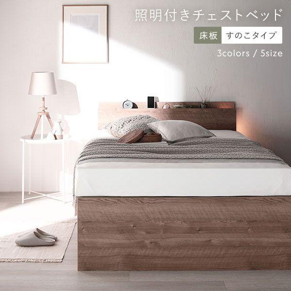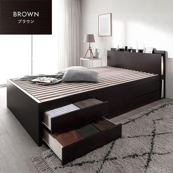 〔お客様組み立て〕 日本製 照明付き チェストベッド すのこ床板タイプ ショート丈 シングル ブラウン フレームのみ 【北海道・沖縄・離島配送不可】