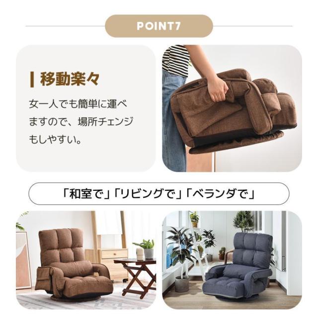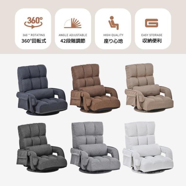 360°回転式座椅子座ったままでも周りのものを手に取りやすい360°回転機能搭載。体の向きを自由に変えることができますので、魅力的座椅子です。
