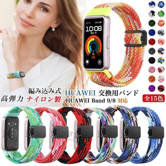 HUAWEI Band 9 / HUAWEI Band 8 ナイロン バンド 切替バンド 編込み 時計バンド 交換ベルト スマートバンド huawei band8 band9 替えベルト スマートウォッチ 交換 ベルト ファーウェイ バンド9 バンド8 おしゃれ 交換バンド 弾力性 リストバンド 伸縮 計15色 カラフル 多彩