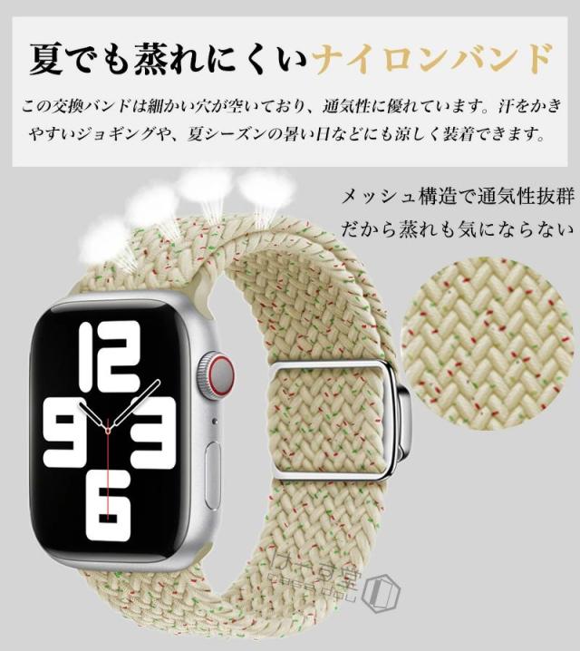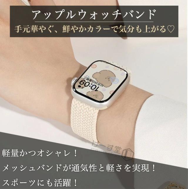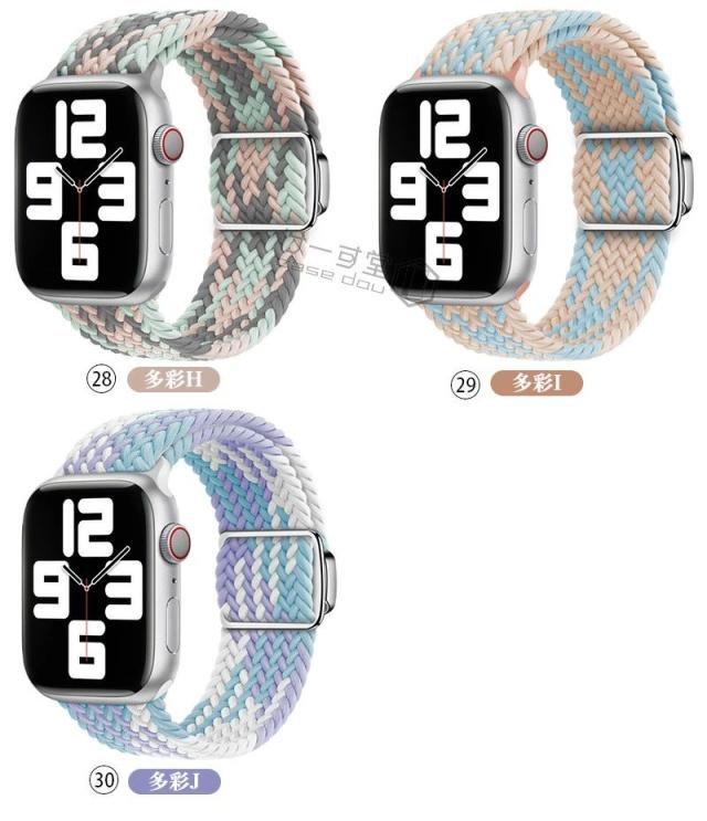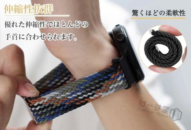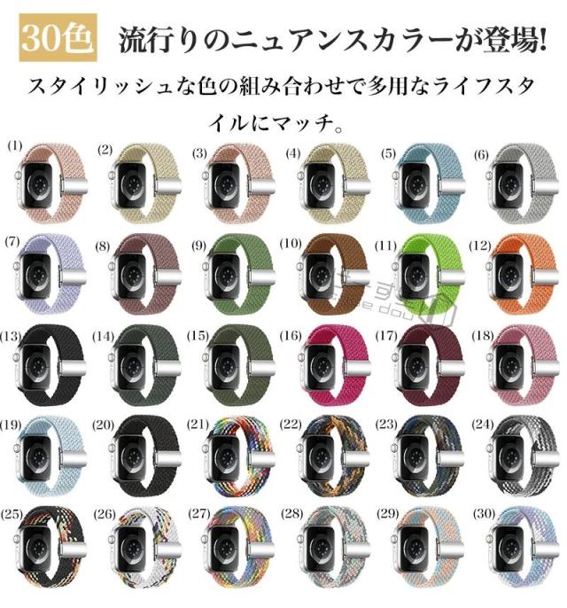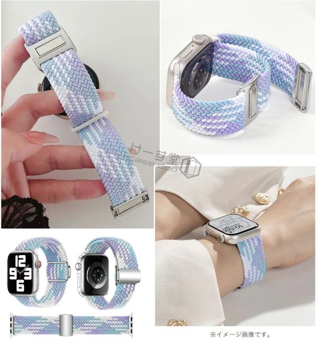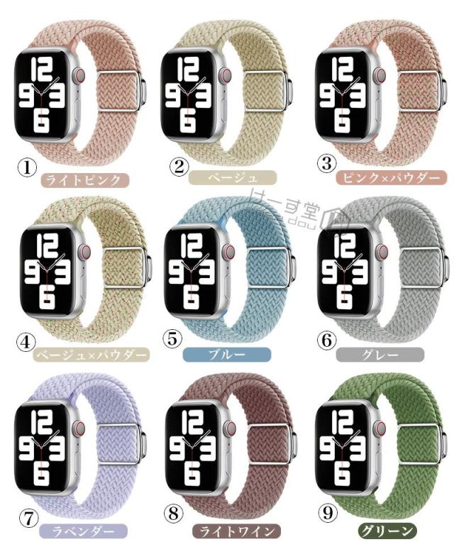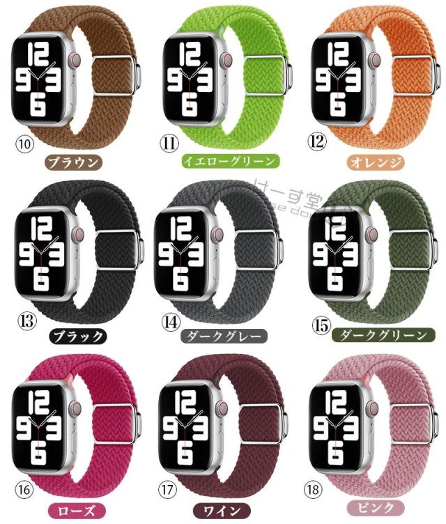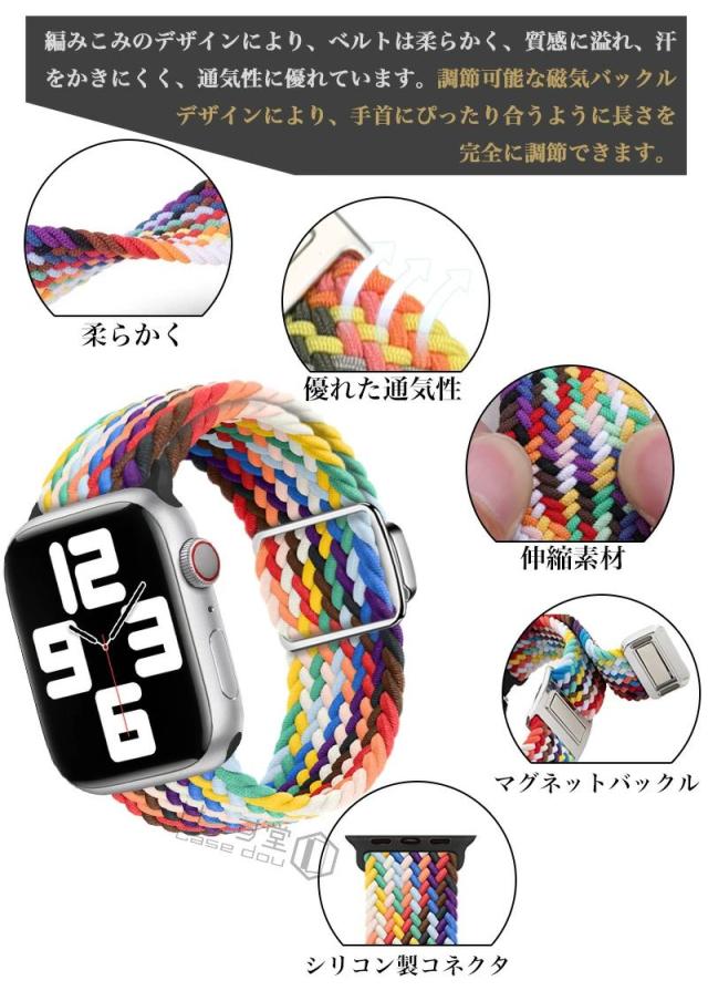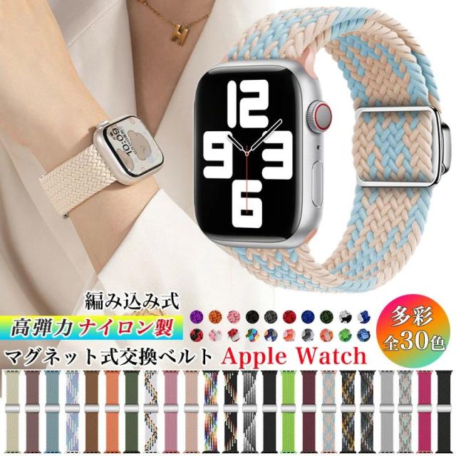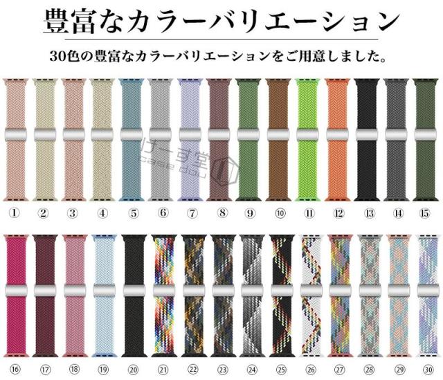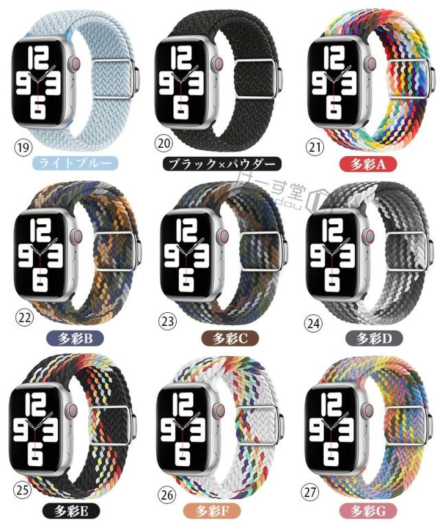 アップルウォッチ 編み込み バンド 【 38mm 40mm 41mm 42mm 44mm 45mm 対応】 apple watch SE 第2世代 Series 9 8 7 6 5 4 3 2 1 ベルト メッシュ ナイロン時計バンド ソロループバンド 腕時計 バンド 通気 伸縮 柔軟性 軽量 磁気吸着式 交換バンド 虹色 カラフル 計30色
