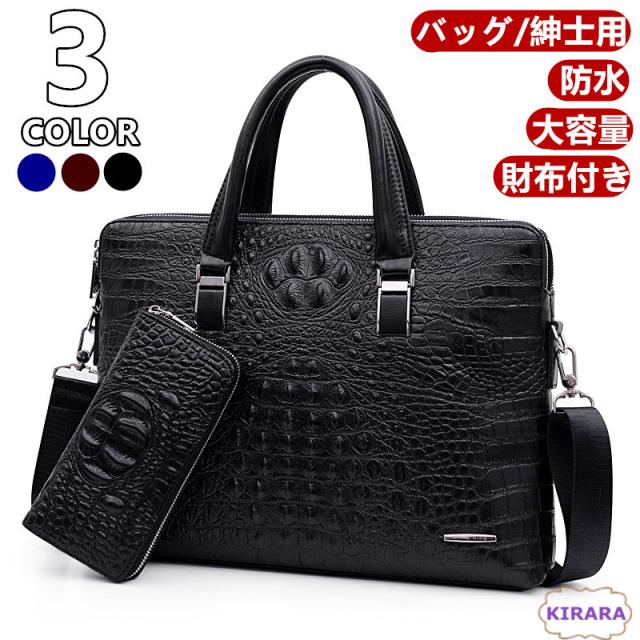 ショルダーバッグ メンズ 財布付き 斜め掛け 肩掛け 革鞄 2WAY ビジネスバッグ ワニ柄 紳士鞄 大容量 撥水加工 カバン トートバッグ A4 ワンショルダー メッセージバッグ 自転車バッグ 通勤 PCバッグ アウター カジュアル
