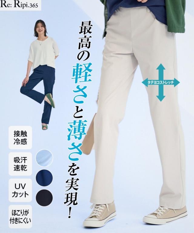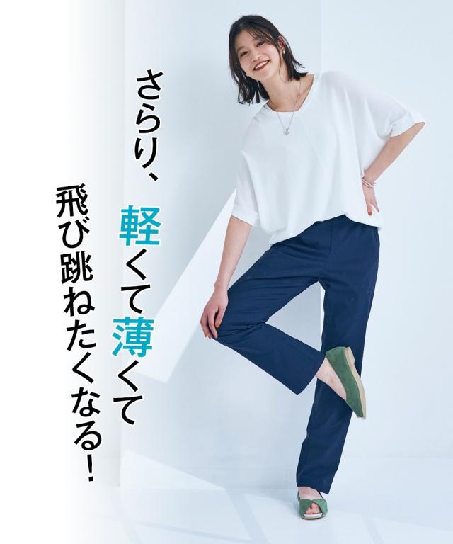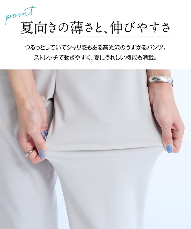 薄く、軽く、涼やか☆つるっとしていてシャリ感もある微光沢のうすカルパンツ。