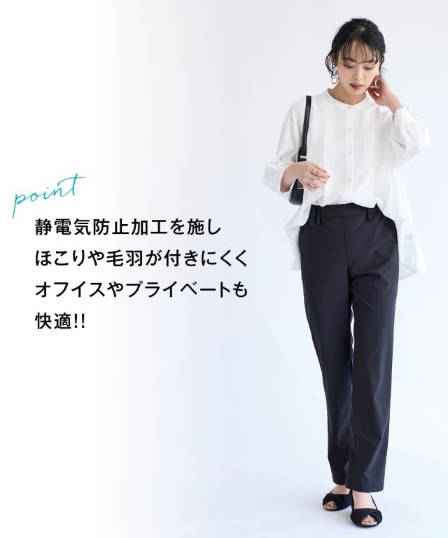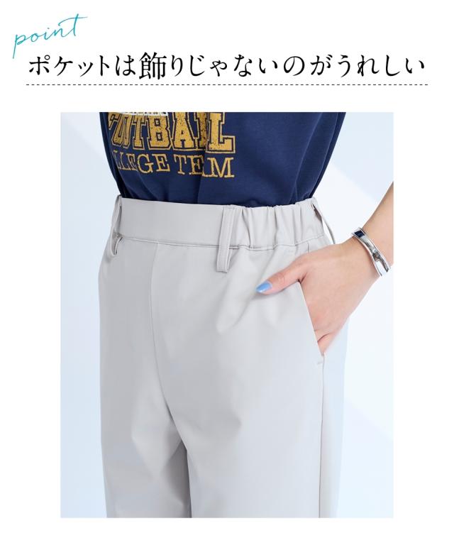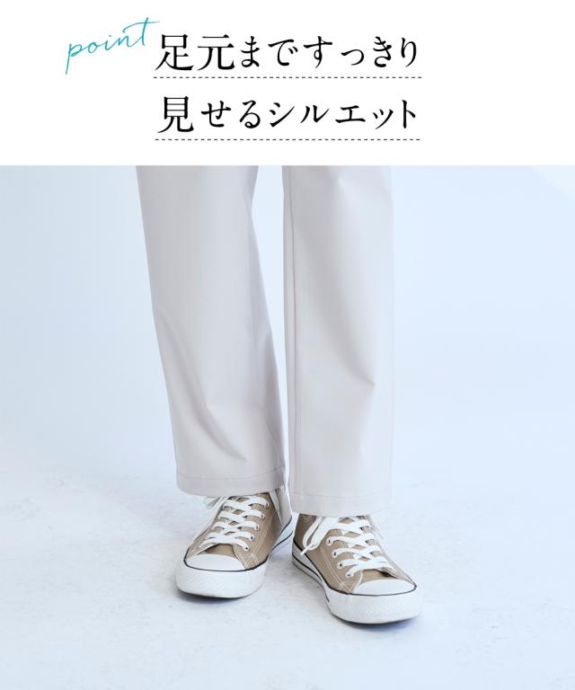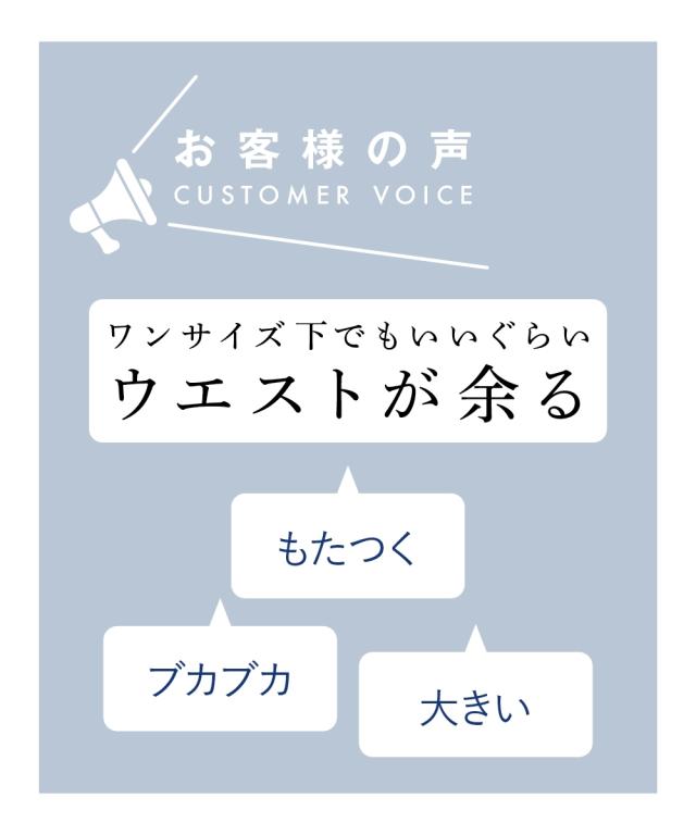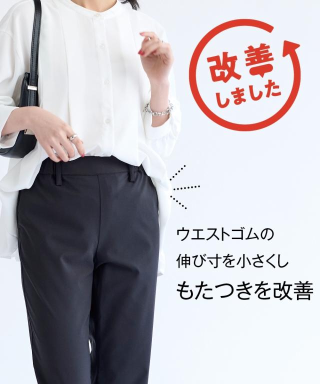 フロントもすっきり見えしながら、実はしっかり伸びる総ゴム仕様でウエストinもきれいに決まりラクチン