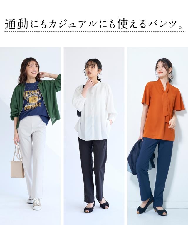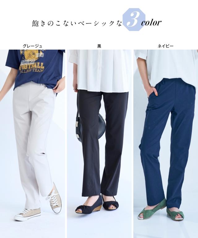 大きいサイズ [うすカル素材]ストレッチストレートパンツ(ゆったり太もも)