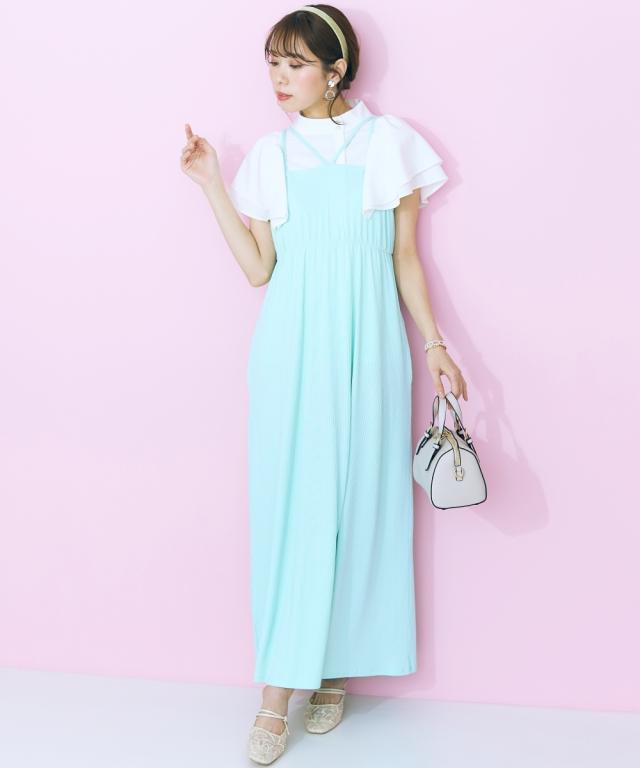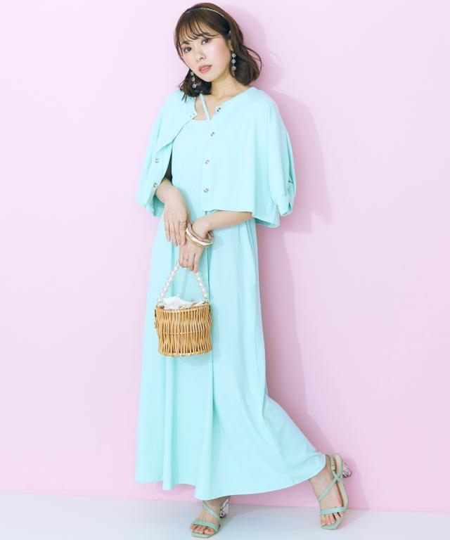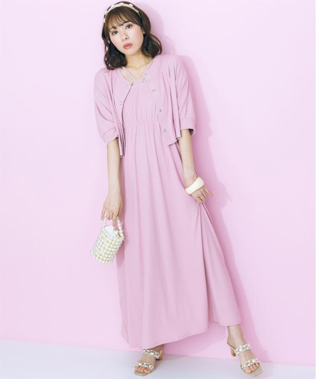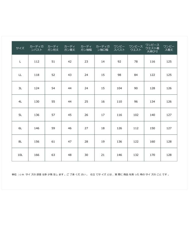 品質:ポリエステル98%・ポリウレタン2% この商品は2点同サイズのみで販売します。[カーディガン]前ボタン開き [ワンピース]肩ひもはアジャスターで長さが多少調節できます。