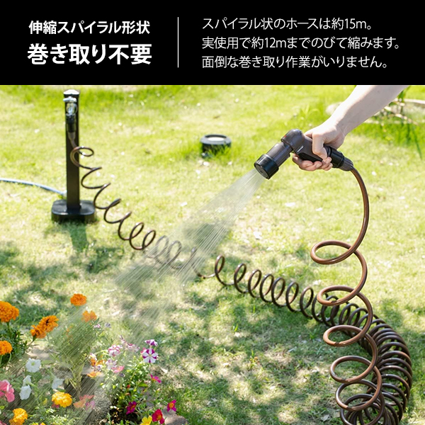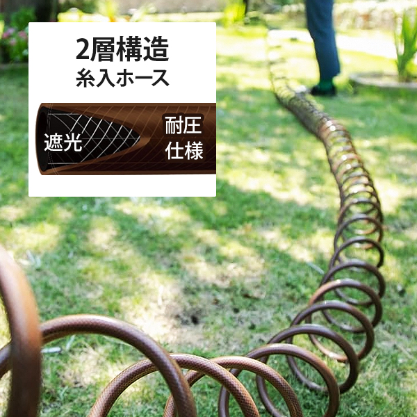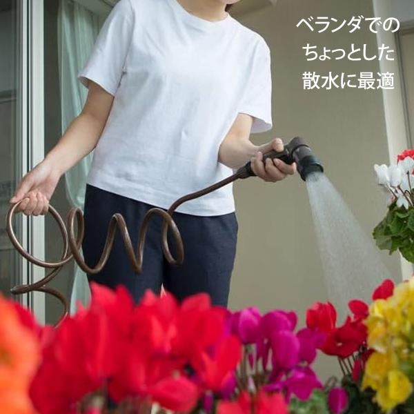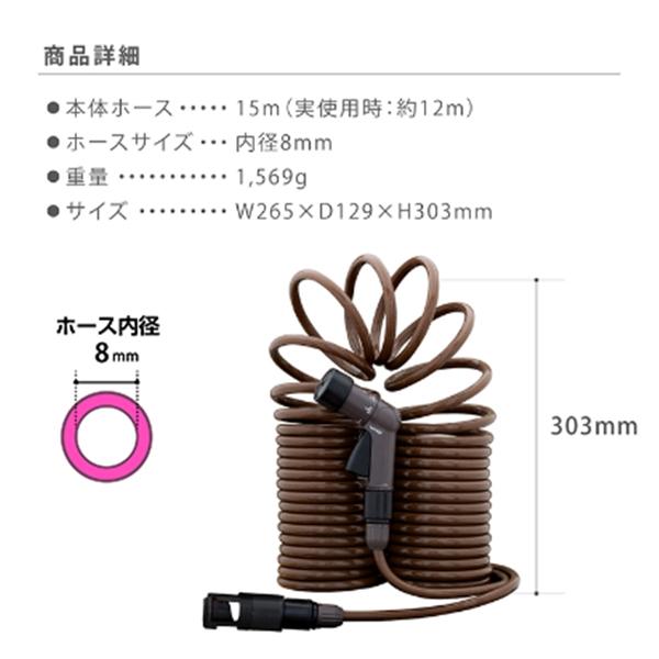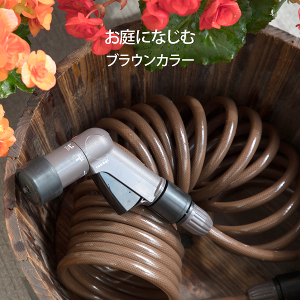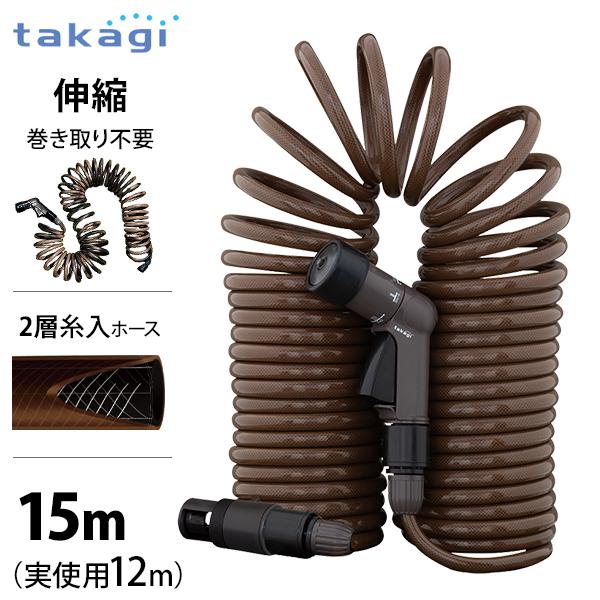 [ブラウン 伸縮 コイルホース 散水ホース スパイラルホース 遮光 防藻 耐圧 園芸用 散水用 おしゃれ コンパクト takagi]